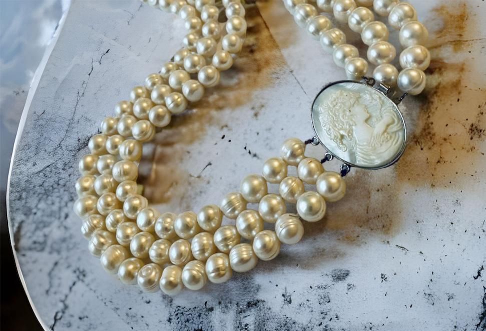 Die von uns handgefertigten Perlenketten, Lüster und exklusiven Verschlüssen sind bei unseren Kunden sehr beliebt.